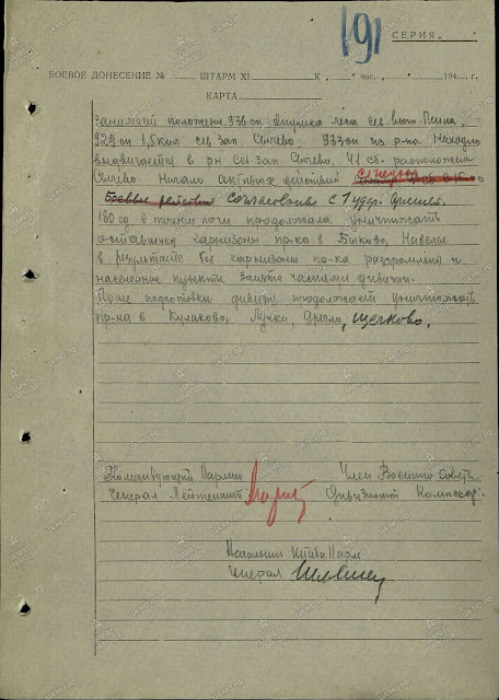 Для усиления частям разрешено отойти и закрепиться на новом рубеже сев.-зап. Росино, южнее Лялино и на фланг 1 полк 163 СД прикрывал с р-на Степаново.
