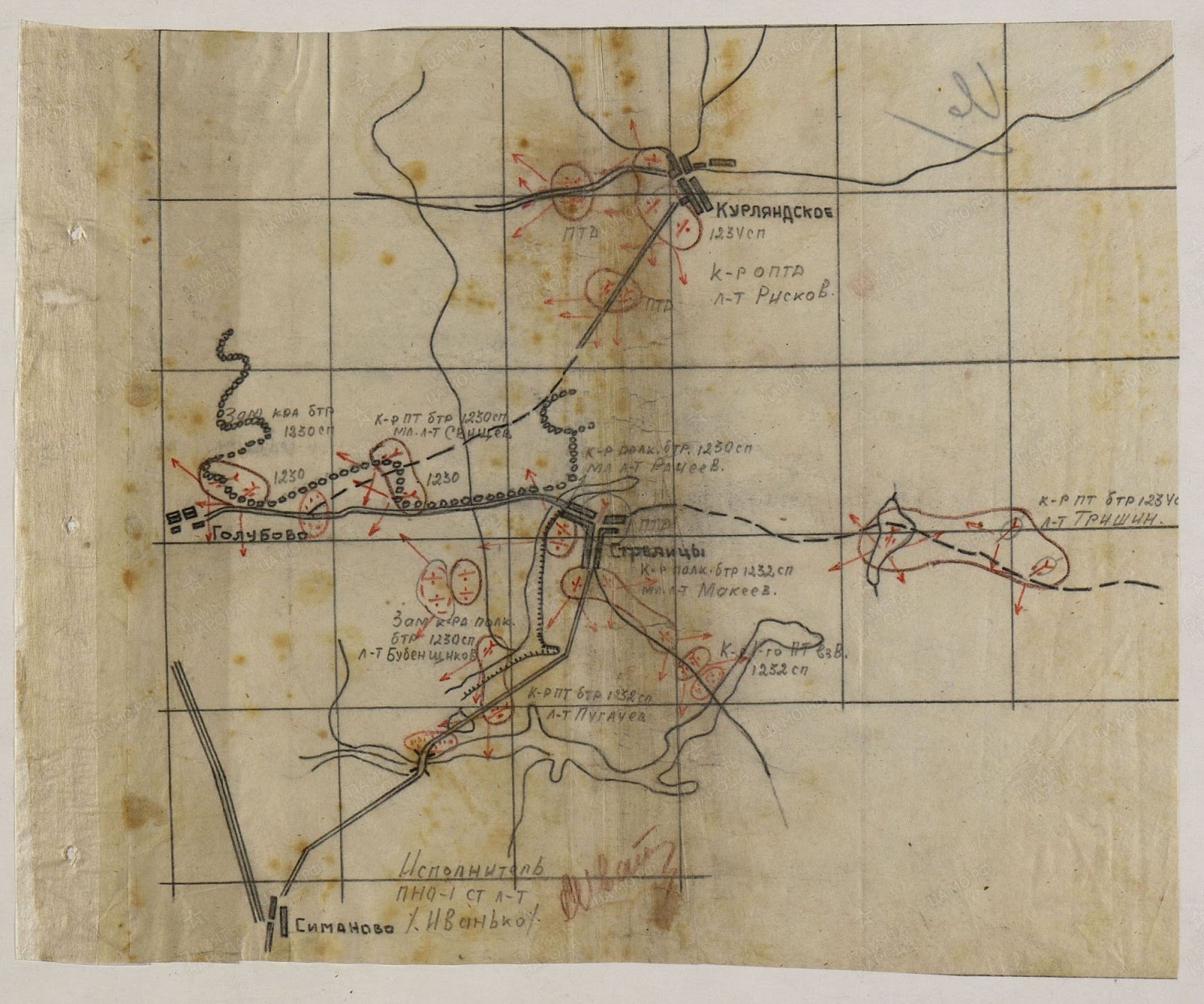 Части 370 СД после ожесточенного боя в 19.00 09.03.42г. заняли Курляндское и Стрелицы, где основная часть гарнизонов пр-ка была уничтожена и мелкие группы пр-ка, преследуемые нашими подразделениями бежали в направлении Никольское, Голубово.